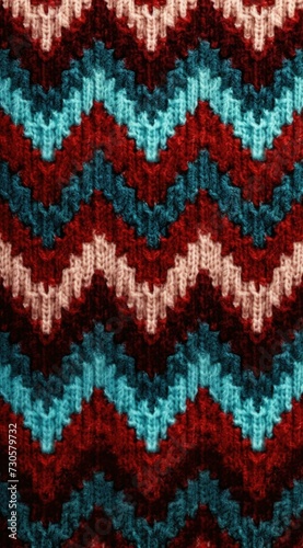 A knitted pattern with red, blue and white stripes. Generative AI.