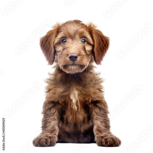 a Labradoodle puppy, Portrait, happy, smiling and healthy, Pet-themed, photorealistic illustrations in a PNG, cutout, and isolated. Generative AI