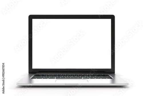laptop, computer, technology, blank, screen, white, background, minimalist, simplicity, presentation, corporate, business, innovation, modern, design, flat