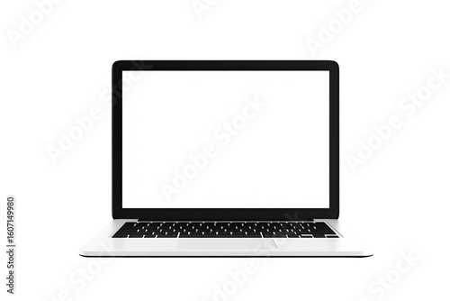 laptop, computer, screen, blank, white, black, keyboard, modern, technology, device, portable, display, digital, electronic, contraption, silver, aluminium, light, front, view, isolated, flat, object, three-dimensional, rendering, graphic, illustration, computing, monitor, machine, innovation, future, work