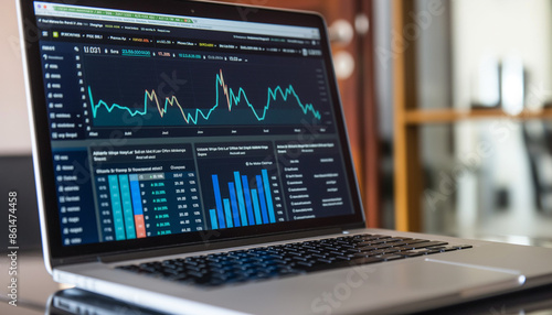 laptop, displaying, chart, graph, datum, analysis, business, professional, organised, workspace, modern, analytical, detailed, bright, informative, strategic, intelligent, dynamic, visual, financial, corporate, efficient, technology, innovative, structured, productive, clear, computer, screen, display, stock, chart, market, cyberspace, digital