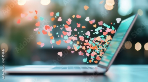 connection, laptop, screen, displaying, web, page, integrated, social, media, element, highlighting, seamless, online, offline, togetherness, colleague, cooperation, cyberspace, no people, innovation, teamwork, meeting, strategy, support, community, glowing, illuminated, futuristic, global, team, network, photo, science, creativity, idea, success, complexity, cyberspace, horizontal, group, person, color image, business, technology, modern, abstract