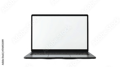laptop, blank, white, screen, centered, black, background, studio, shot, technology, computer, device, portable, electronic, keyboard, display, modern, design, minimalist, workspace, digital, isolated, empty, presentation, contraption, closeup, view, object, work, space, mock