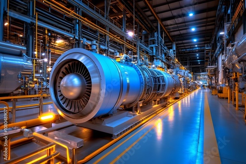 aircraft, engine, industrial, factory, energy, gas, tank, blue, metallic, powerful, machinery, equipment, technology, metal, large, pipe, complex, mechanical, production, system, structure, fuel, turbine, modern, interior, workshop, heavy, assembly, power, process, component, metalwork, tech, engineering, transport, innovation, tool, manufacturing