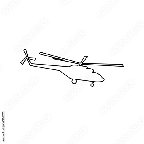 A large black outline helicopter symbol on the center. Vector illustration on white background