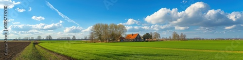 large, field, house, middle, sky, blue, cloud, landscape, nature, green, grass, rural, agriculture, countryside, country, meadow, summer, farming, spring, tree, season, outdoors, beauty, horizon, village, building, environment, background, land, view, sunny, forest, cloudy, barn, home, farmland, construction, panoramic, colourful, rustic, new, hill, day, europa, old, wooden, travel, pasture, panorama