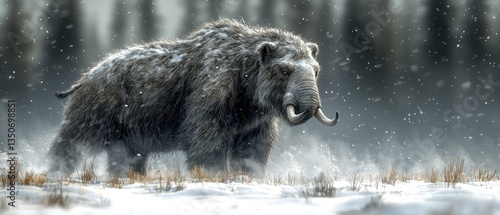 bear, snow, landscape, prehistoric, winter, wildlife, nature, mammal, fur, tusk, cold, environment, forest, habitat, animal, wilderness, ice, snowflake, large, paw, outdoors, ancient, creature, ecosystem, tundra, scene, fauna, survival, adaptation, majestic, powerful, solitary, snow-covered, track, wild, atmospheric, serene, beauty, coldness, calmness, strength, evolution, scenery, realism, art, depiction, illustration, journey