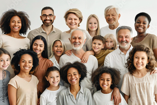 A large group of happy people from different ethnic groups and different generations of people
