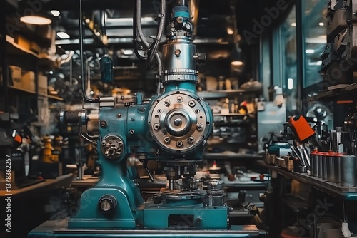 metal, steel, machine, machinery, tool, workshop, industrial, engineering, equipment, manufacturing, construction, hardware, part, bolt, screw, gear, mechanism, factory, heavy, vintage, design, process, assembly, precision, detail, texture, surface, colours, blue, silver, chrome, structure, composition, center, sharpened, light, shadow, background, shelf, storage, item, work, craft, craftsmanship, building, mechanical, setting, room
