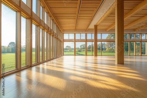 open, wood, wooden, architecture, building, interior, column, hall, room, column, light, empty, long, luxury, house, floor, wall, ceiling, large, space, roomy, background, background, nobody, window, glasses, office, view, apartment, indoor, green, field, grass, nature, relax, relaxation, hallway