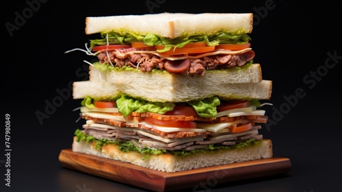 background, bacon, big, black, bread, breakfast, cheese, closeup, cucumber, fast food, food, fresh, freshness, green, ham, hamburger, huge, juicy, large, layer, lettuce, meal, mustard, nobody