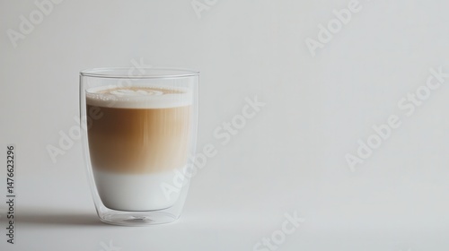 latte, hot drink, glasses, layer, drink, beverage, hot, delicious, tasty, epicure, eatery, cafes, brown, white, closeup, macro, detail, bright, cheerful, elegant, beautiful, ornate, graphic, artistic, organic, natural, diet, nourishment, ingredient, morning, caffeine