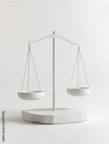 A lever balance scale made of white stone, minimalist design, solid background, high detail, realistic texture, soft lighting, neutral tones
