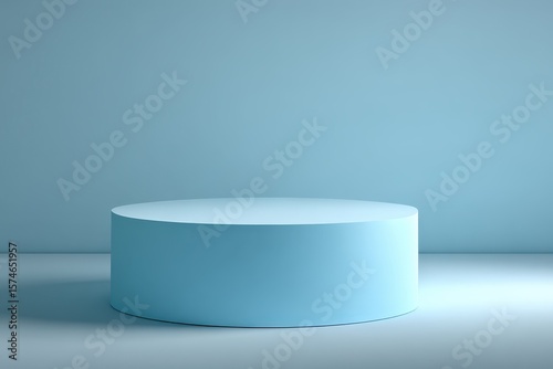 A light blue cylinder platform stands in a plain, slightly darker light blue room