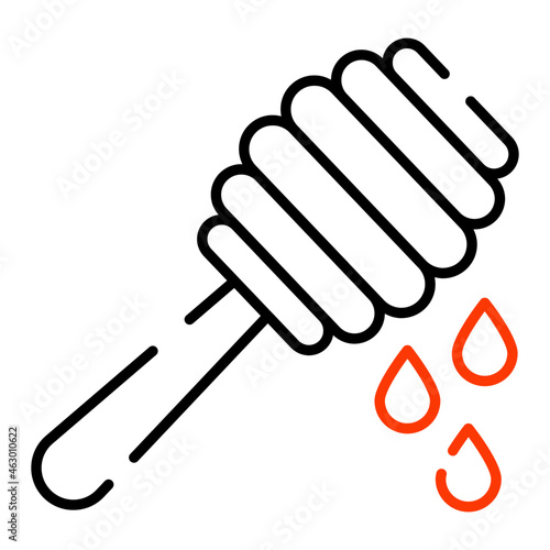 honey, dipper, stick, spoon, droplet, wand, icon, vector, linear, dripped
