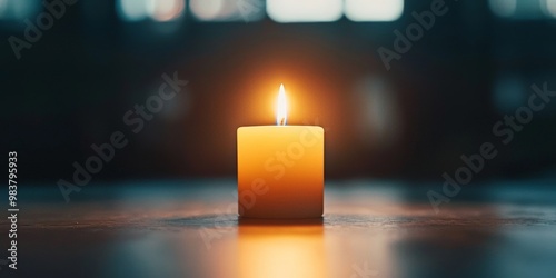 A lit candle in the center of a dark room, its gentle light creating a warm and serene atmosphere