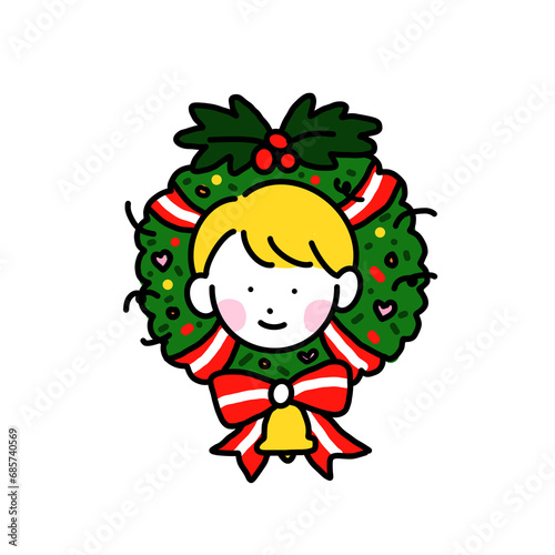 christmas, cartoon, illustration, vector, tree, children, holiday, art, drawing, fun, funny, winter, children, new year, face, design, celebration, elf, smile, people, boy, hat, christmas, children, character