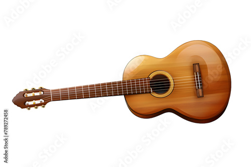 A lone acoustic guitar, wooden finish, isolated on transparent background