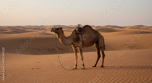 A Lone Camel in the Vast Expanse of the Arabian Desert Under a Serene Sky