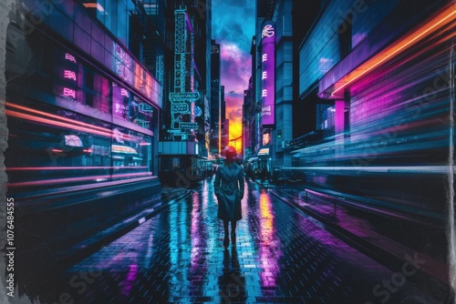 city, street, neon, light, urban, night, futuristic, city landscape, traffic, blur, motion, wet, asphalt, building, alley, dark, shadow, solitude, lonely, modern, architecture, mood, atmosphere, abstract, digital artwork, graphic design, photo, artistic, moody, vibrant, colours, city life, nightlife