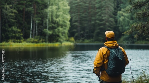 hiker, lake, nature, forest, water, backpack, exploration, adventure, serenity, stillness, lone, escape, essence, quiet, sunlight, beauty, flora, vantage, balance, surround, wilderness, leisure, solitude, retreat, placid, mountain, journey, timberland, silhouette, landscape, enjoy, untamed, fauna, wildlife, travel, freedom, mist