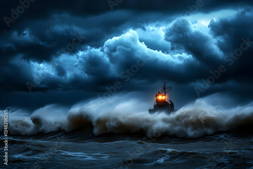 storm, ship, ocean, wave, sea, boat, vessel, dark, night, dramatic, powerful, nature, weather, turbulent, rough, tempest, danger, challenge, perseverance, resilience, survival, intense, dramatic sky, cloudy, dark clouds, huge waves, water, maritime, nautical, transportation, adventure, risk, struggle