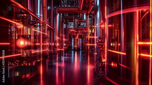 long, dark, hallway, neon, light, pipe, red, empty, silver, visible, people, background, technology, interior, corridor, perspective, building, futuristic, modern, design, room, abstract, wall, science, tunnel, construction, hall, blue, black, industrial, bright, space, future, structure, system, concrete, architecture, metal, floor, digital, urban, inside, three-dimensional, door, business, transportation, indoor, glowing