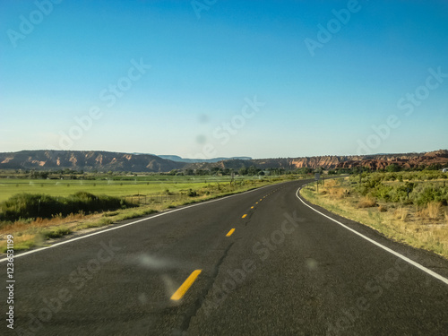 long, empty, road, clear, blue, sky, mountain, nature, car, landscape, travel, asphalt, highway, journey, summer, scenery, country, rural, scenic, drive, horizon, desert, outdoors, route, transportation, trip, beautiful, land, view, lane, yellow, line, sunny, way, hill, cloud, nobody, tour tourism, grass, vale, dry, straight, countryside, destination, us, background, southwest, green, field
