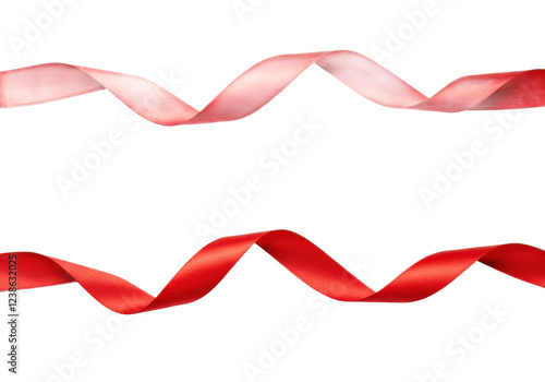 A long, flowing red ribbon with smooth curves and a satin texture, isolated on a white background