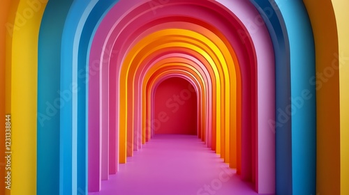 long, hallway, rainbow, colours, red, orange, yellow, purple, blue, green, light, background, design, abstract, pink, modern, architecture, pattern, art, geometric, illustration, bright, arch, empty, three-dimensional, hall, texture, room, floor, interior, wall, graphic, decoration, vibrant, neon, shape, space, wallpaper, violet, tunnel, perspective, line