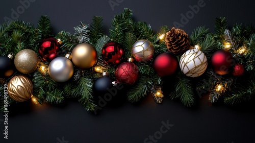 long, line, christmas, ornament, including, red, gold, ball, hanging, decorated, tree, celebrate, holiday, winter, festive, green, december, seasonal, christmas, year, shiny, design, background, white, new, merry, gift, tree branch, pine, bright, gold, fir, tradition, snow, card, toy, christmas tree, santa, light, spruce, colourful, greeting, beautiful, new year, happy, symbol, postcard, space, bauble