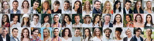 A lot of happy people, Portraits of group headshots in collage mosaic collection. Many smiling multicultural faces looking at camera. Human resource society database concept.