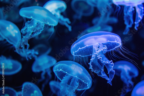 neon, aquarium, underwater, marine life, glowing, oceanic, marine animal, undersea, aquatic, exotic, aethereal, semitransparent, ocean life, beautiful, mesmerizing, colourful, submerged, spectacular, neon light, surreal, captivating, bioluminescence