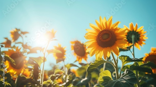 A lush garden filled with tall, blooming sunflowers basking in the sunlight