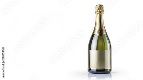 A luxurious bottle of champagne with a blank label isolated on a pristine white background, showcasing the elegant shape and sleek design of the bottle, champagne, beverage