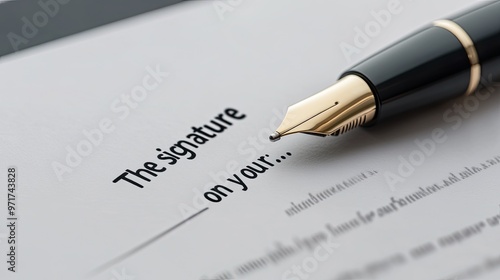 A luxurious golden fountain pen is positioned above a blank page, ready to sign an important document, highlighting the art of fine writing and attention to detail