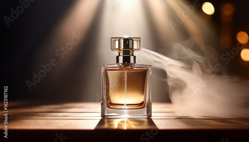 a luxurious perfume bottle bathed in soft light emanating an alluring mist and fragrance a symbol of luxury and allure