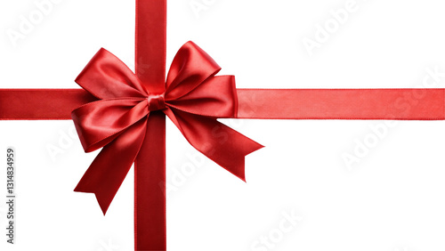 A luxurious red satin ribbon with a beautifully tied bow, isolated on a transparent background.