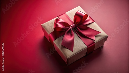 gift, box, present, ribbon, bow, satin, crimson, red, luxurious, elegant, festive, celebration, occasion, surprise, package, wrapping, holiday, anniversary, birthday, valentine, romantic, gratitude, appreciation, luxury