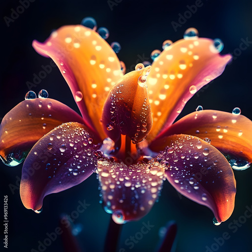a macro flower photography with water beads