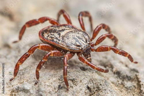 tick, arachnid, parasite, insect, bug, nature, wildlife, macro, photo, closeup, leg, exoskeleton, brown, grey, white, textured, outdoors, ground, cover, rock, stone, creepy, crawly, animal, fauna, biology, entomology, pest, disease, infection, danger, health, safety, wilderness