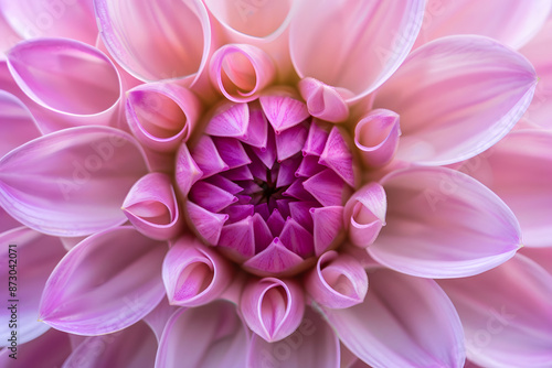 A macro shot of a pink dahlia, with its tightly packed petals creating a stunning pattern.