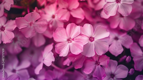 A macro view of Phlox subulata (Polemoniaceae) flower, capturing its intricate details, suitable for background or texture use.