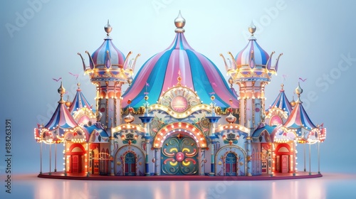 magical, carnival, traveling, dimension, its, tent, shimmering, enchantment, white, background