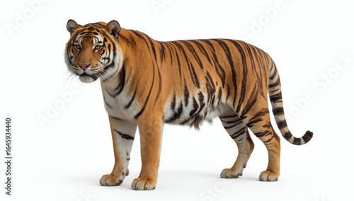 A majestic Bengal tiger with vivid orange and black stripes. This powerful image is ideal for bold logos, branding, or dramatic wall art.