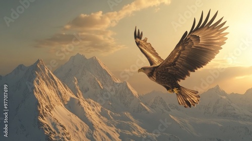 A majestic eagle soaring high above snow-capped mountains, its wings spread wide