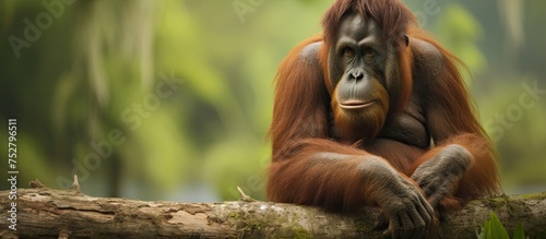 A Majestic Giant Orangutan Stands Tall in the Forest's Embrace
