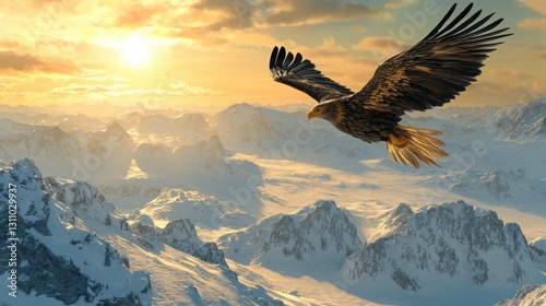 A majestic golden eagle soaring above a shining sunlit horizon, symbolizing excellence.