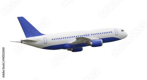 A majestic passenger jet soaring through the sky, a symbol of adventure and global connection, captured in a clean, three-dimensional render.
