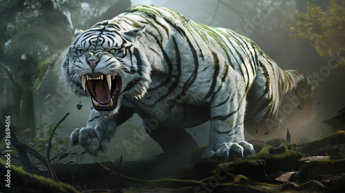 a majestic predator tiger with a wild look is roaring in the wild forest created with Generative Ai
